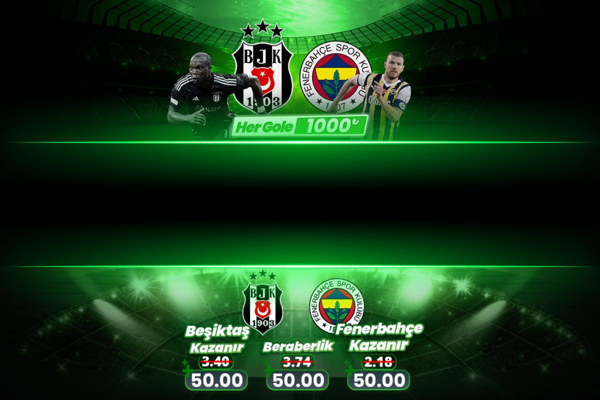 Dev derbiye çok az bir süre kaldı, Bets10 bahis sever üyelerine harika oranları hazırladı ve açıkladı! Bets10 üyeleri Beşiktaş kazanır, Beraberlik, Fenerbahçe Kazanır, 2.5 Gol Üstü bahislerine 50 oran verdi. Sen de kazananlar arasında yerini almak istiyorsan hemen görsele ya da görselin altındaki “50 ORAN İÇİN TIKLA” butonuna tıkla. Bets10 yorumlar bağlantısına tıklayarak markanın ne kadar güvenilir ve kampanyalarında ne kadar başarılı olduğunu görebilirsin.